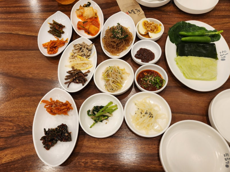 식사 후에는 다양한 반찬을 즐길 수 있었는데, 특히 나물과 피클이 입맛을 돋우어 주었어요.