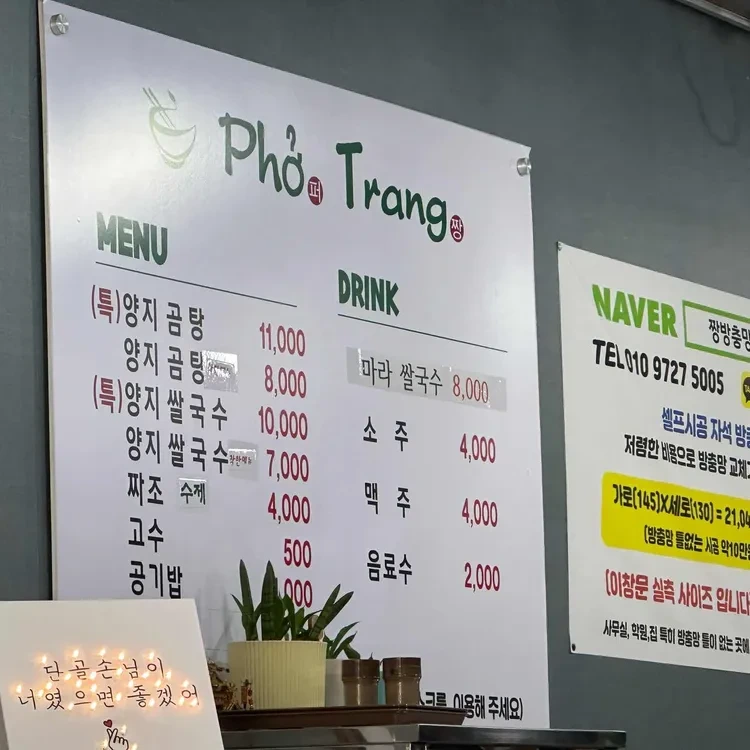 퍼짱의 메뉴는 다양해요. 가장 인기 있는 메뉴는 양지 쌀국수와 양지 곰탕이에요. 양지 쌀국수는 10,000원, 양지 곰탕은 11,000원으로 가격도 합리적이에요. 이 외에도 짜조(4,000원)와 마라 쌀국수(8,000원)도 추천할 만해요. 특히 짜조는 바삭한 식감이 일품이에요.