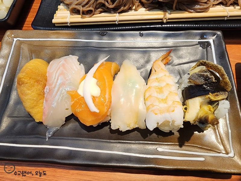 또한, 초밥 외에도 소바와 같은 면 요리도 함께 제공되니, 다양한 맛을 즐길 수 있는 점이 매력적이에요.