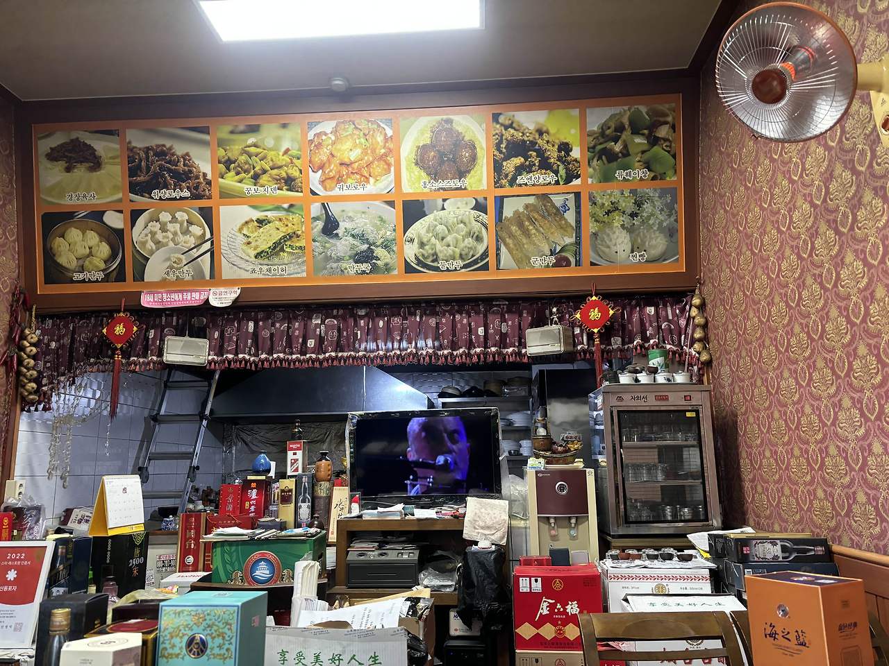 식당 내부는 아늑하고 따뜻한 분위기로 꾸며져 있어요. 벽에는 다양한 음식 사진이 걸려 있어, 어떤 음식을 주문할지 고민하는 재미도 있어요.