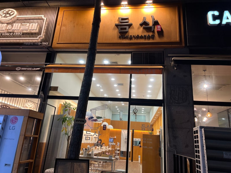 듬삭은 분당의 야탑역 근처에 위치해 있어 접근성이 아주 좋아요. 주차공간도 넉넉해서 차를 가지고 방문하기에도 편리하답니다. 외관은 고급스러운 나무 간판이 눈에 띄며, 넓은 유리창을 통해 밝고 아늑한 내부가 보이더라고요. 내부는 모던하면서도 따뜻한 느낌으로 꾸며져 있어서 식사하는 내내 기분이 좋았어요.