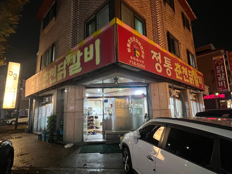 정통 춘천닭갈비는 분당 정자역 근처에 위치해 있어요. 외관은 두 층으로 되어 있으며, 큰 창문을 통해 내부를 엿볼 수 있어요. 특히, 밤에는 조명이 켜져 더욱 매력적인 분위기를 자아내죠.