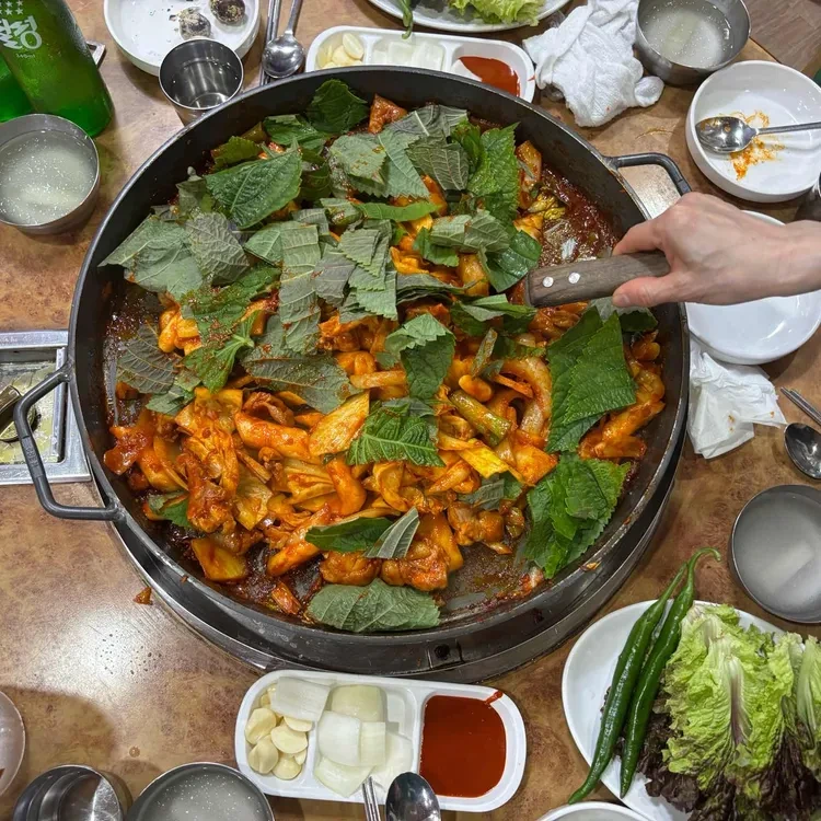 매콤한 소스와 함께 볶아진 닭고기와 채소는 조화롭게 어우러져서 입맛을 사로잡아요. 또한, 고소한 맛을 더해주는 참기름과 함께 제공되는 신선한 쌈채소는 별미랍니다.