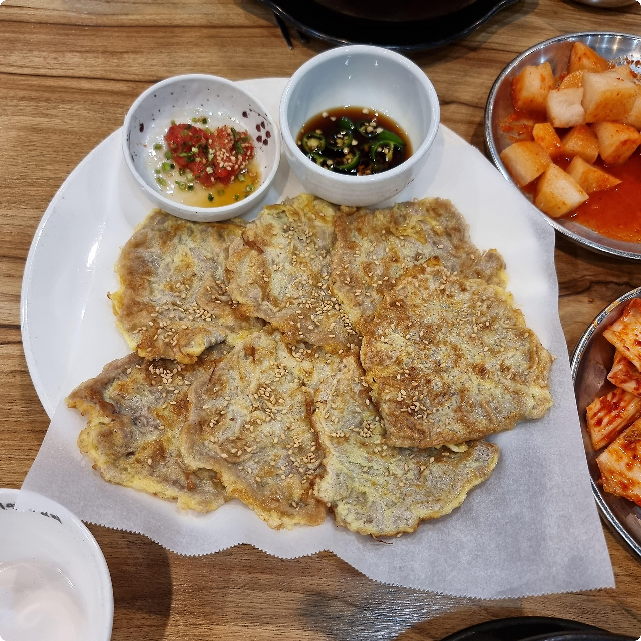 여기서 제공되는 전은 바삭하고 고소한 맛이 일품이에요.