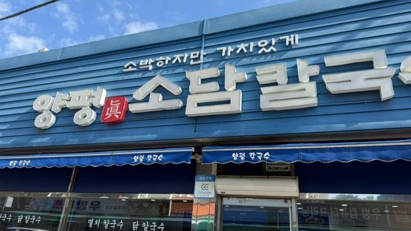 양평 소담칼국수는 상주 시내의 중심가에 위치하고 있어 접근성이 아주 좋습니다. 주차 공간도 마련되어 있어 차를 가지고 가시는 분들도 편리하게 이용할 수 있어요. 건물 외관은 파란색과 흰색으로 조화롭게 되어 있으며, 간판이 눈에 띄게 크게 적혀 있어 쉽게 찾을 수 있습니다.