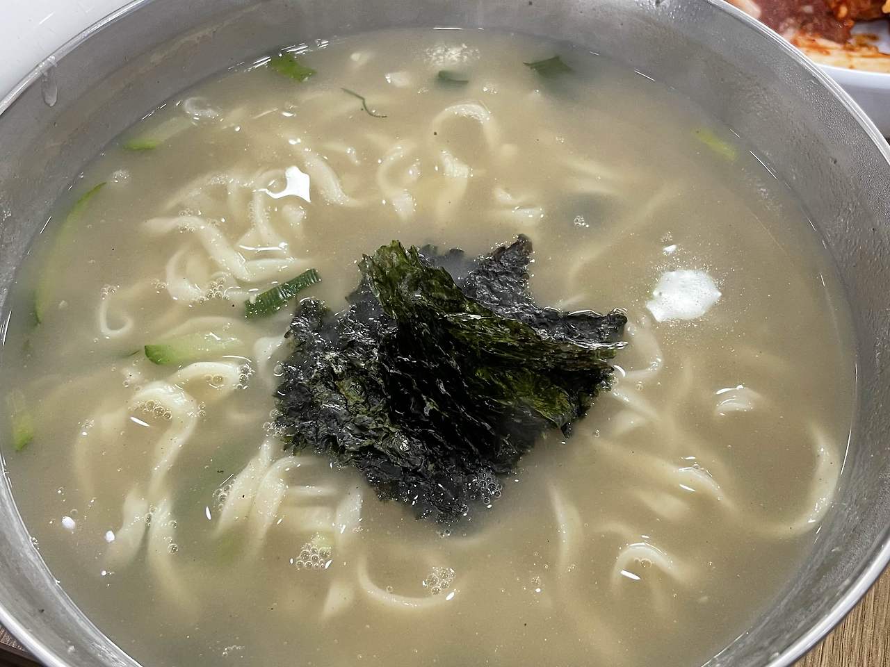 이곳의 대표 메뉴는 바로 '멸치 칼국수'입니다. 국물 맛이 깊고, 면발이 쫄깃한 것이 특징이에요. 기본적으로 칼국수의 맛을 중요시하는 분들이라면 꼭 드셔보셔야 할 메뉴죠. 가격은 8,000원으로, 푸짐한 양에 비해 가성비도 아주 훌륭합니다. 그리고 함께 제공되는 김치는 정말 맛있는데요, 매콤하고 아삭아삭한 식감이 칼국수와 함께 먹기에 안성맞춤이에요.