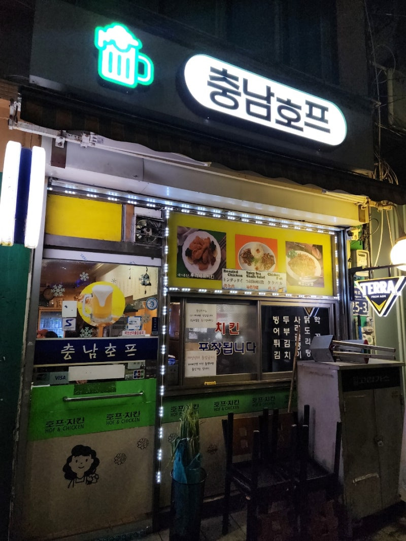 충남호프는 서울역에서 도보로 약 5분 거리에 위치해 있어 접근성이 매우 좋습니다. 외관은 아담하면서도 친근한 느낌을 주며,