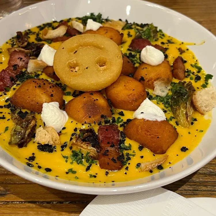또한, 이곳의 사이드 메뉴인 감자튀김도 정말 맛있어요. 바삭한 식감이 일품이에요. 그리고 디저트로는 크림이 올라간 만두 같은 요리도 추천해요. 가격은 8,000원 정도로, 달콤한 맛이 식사를 마무리하기에 딱 좋아요.