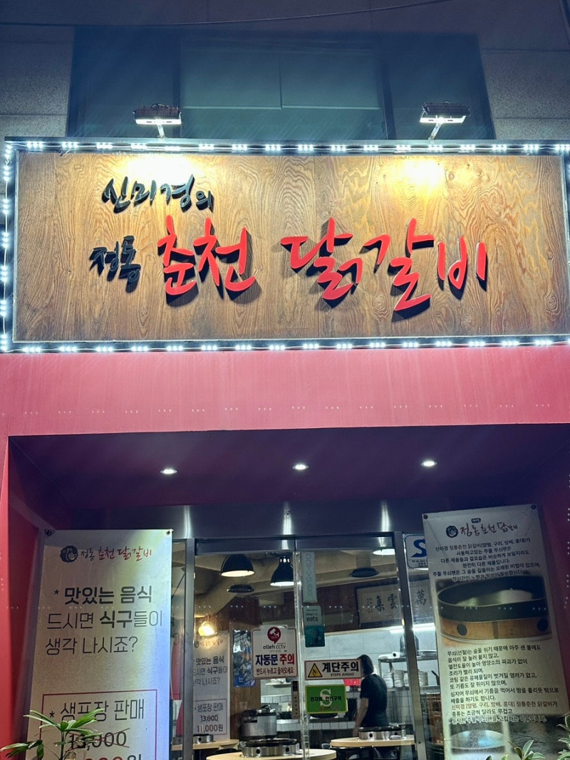이곳의 간판은 "신미경의 전통 춘천 닭갈비"라고 적혀 있어, 이곳이 닭갈비 전문점임을 한눈에 알 수 있어요. 내부는 아늑하고 편안한 분위기로, 가족 단위 손님이나 친구들과의 모임에 적합해요.