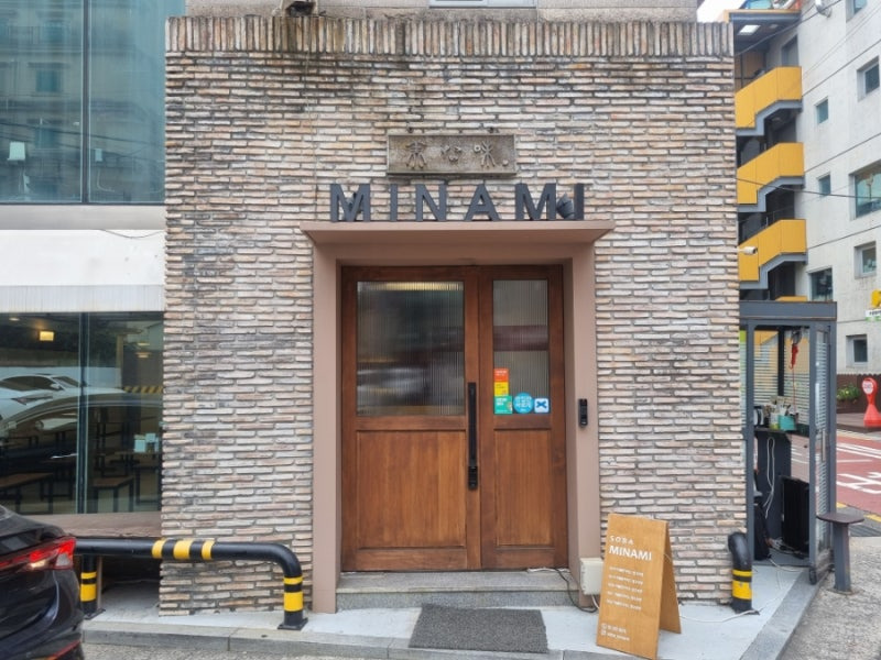 미나미의 인테리어는 깔끔하고 현대적인 느낌이었어요. 나무로 된 테이블과 의자, 그리고 아늑한 조명이 어우러져 편안한 분위기를 만들어 주었답니다. 특히, 식당의 외관도 매력적이어서 지나가는 사람들의 시선을 끌기에 충분해요.