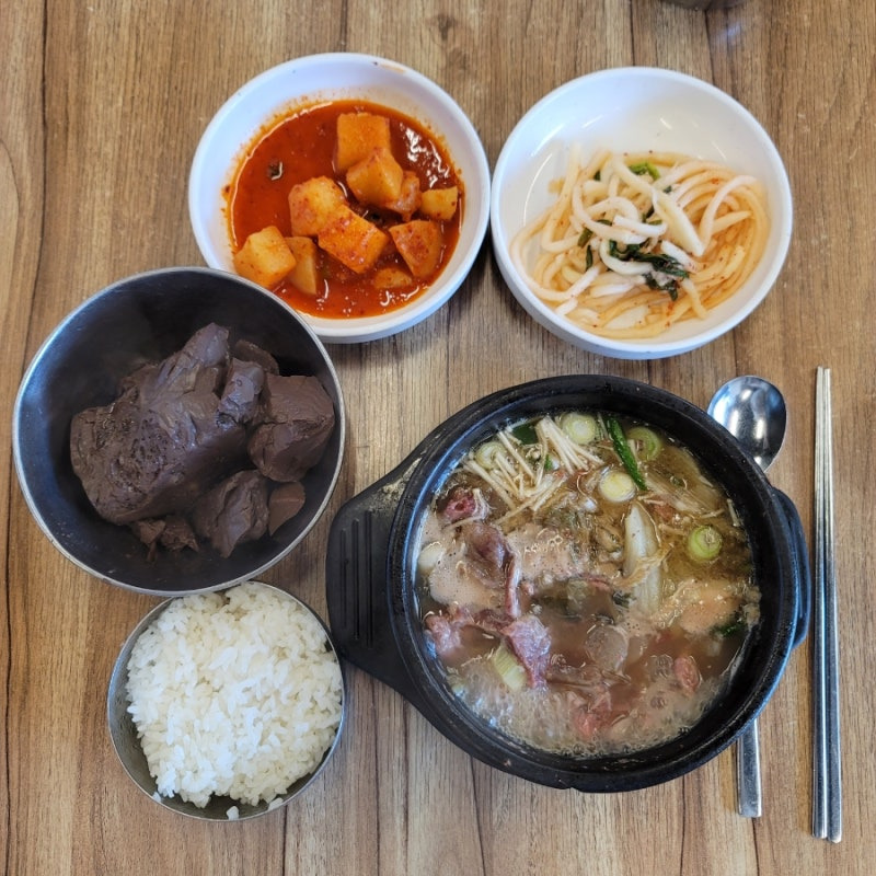 이곳의 대표 메뉴는 해장국과 수육이에요. 해장국은 깊고 진한 국물 맛이 일품이며, 다양한 재료가 들어가 있어요. 가격은 대략 8,000원에서 10,000원 사이로, 양도 푸짐해요. 수육은 부드러운 고기와 함께 제공되며, 가격은 12,000원 정도에요. 이 외에도 다양한 반찬이 함께 제공되어 더욱 풍성한 식사를 즐길 수 있어요.