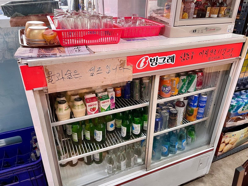 오뚜기식품은 성수동에 위치한 오래된 한식 맛집이에요. 외관은 슈퍼마켓처럼 보이지만, 내부에 들어가면 아늑한 식당 분위기가 느껴져요.