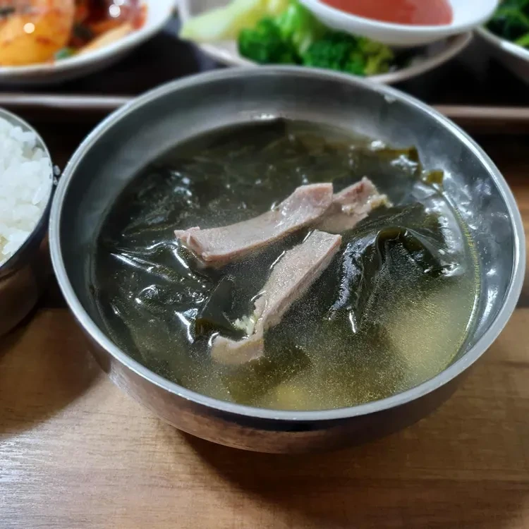 이곳의 대표 메뉴는 바로 해장국이에요. 해장국은 5,000원으로 정말 가성비가 뛰어나죠. 국물은 맑고 깊은 맛이 나며, 고기는 수구레로 부드럽고 풍미가 가득해요. 해장국 외에도 다양한 밑반찬이 제공되는데, 김치, 나물, 그리고 해조류 등이 있어요. 특히, 해조류는 고소한 맛이 일품이에요.
