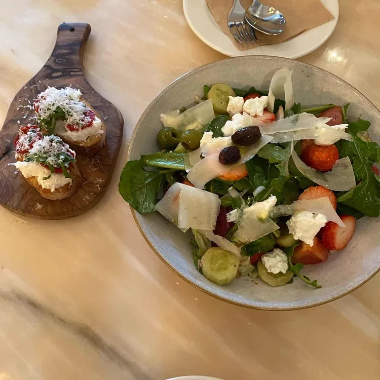 - 신선한 채소와 토마토, 올리브가 어우러진 샐러드로, 가벼운 식사를 원하시는 분께 추천해요.