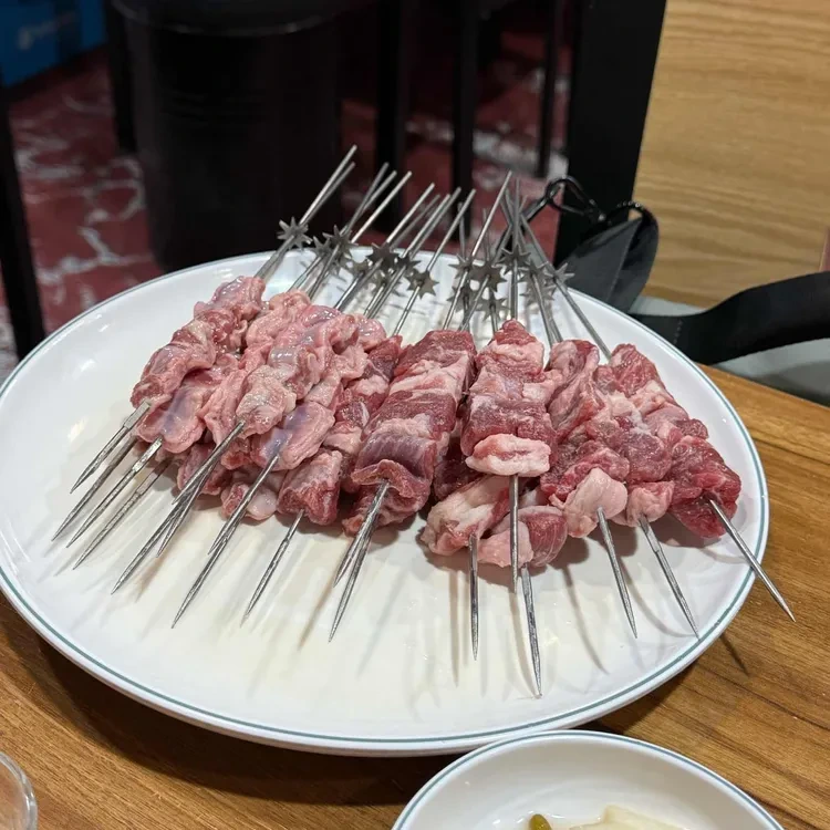 이곳의 대표 메뉴는 당연히 양꼬치죠! 양꼬치는 신선한 양고기를 사용하여 부드럽고 풍미가 가득해요. 특히, 양꼬치 외에도 양갈비살, 양갈비, 그리고 다양한 사이드 메뉴가 준비되어 있어요. 사이드로는 매콤한 양념의 쌈장과 함께 나오는 채소들이 있어, 고기와 함께 먹으면 더욱 맛있답니다.