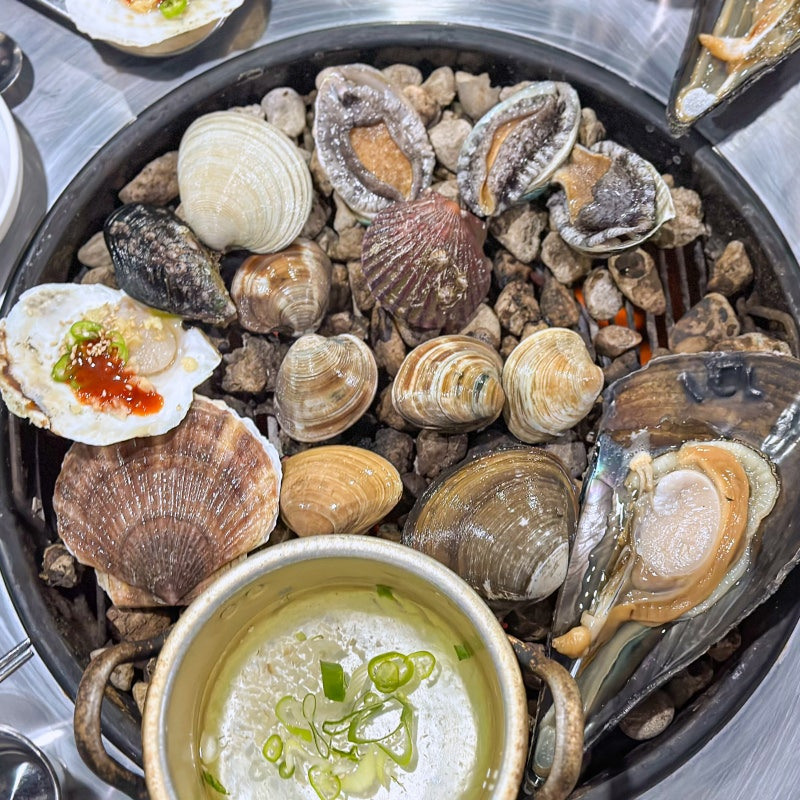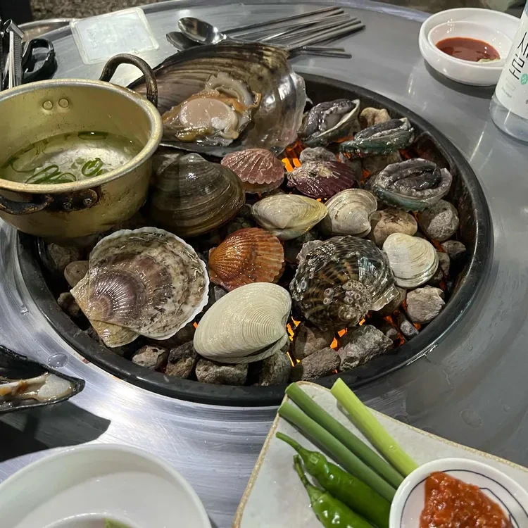 조개도의 인테리어는 바다를 연상시키는 느낌으로 꾸며져 있어요. 바닥에는 자갈이 깔려있고, 테이블마다 그릴이 설치되어 있어 직접 조개를 구워 먹는 재미가 있답니다. 분위기는 활기차고, 가족 단위 손님부터 친구들과의 모임까지 다양한 사람들이 방문하는 곳이에요.