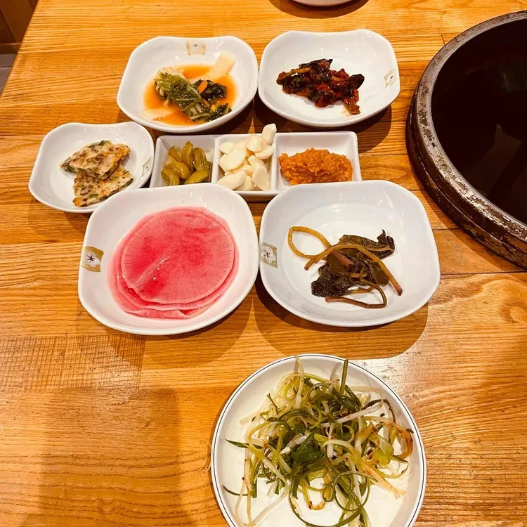 반찬으로는 김치, 나물, 그리고 고소한 전이 제공되는데, 이 모든 것이 조화롭게 어우러져 식사를 더욱 풍성하게 만들어줘요. 개인적으로는 고기와 함께 나오는 쌈장과 쌈채소가 정말 맛있었어요.