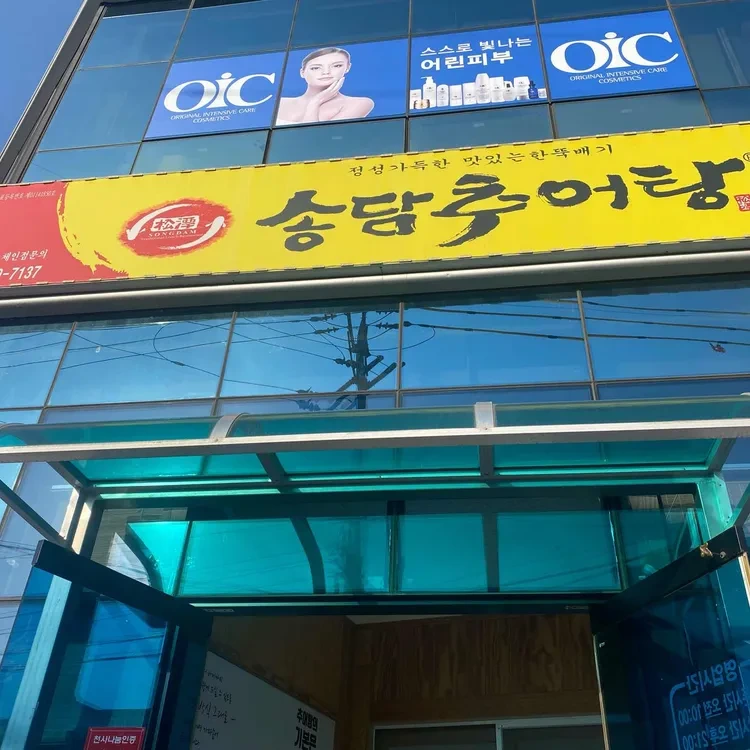 송담추어탕은 경북 성주에 위치해 있어요. 이곳은 쉽게 찾을 수 있는 상가 건물 안에 자리 잡고 있어요. 식당 외관은 밝고 아늑한 느낌을 주며,