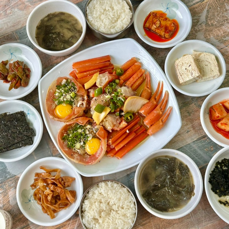 이곳의 추천 메뉴는 바로 붉은대게 찜과 간장게장이에요. 붉은대게 찜은 신선한 대게를 통째로 찌고, 간장게장은 대게의 살을 간장에 재워서 먹는 요리예요. 가격은 찜이 40,000원, 간장게장이 35,000원 정도로, 양도 푸짐하고 맛도 일품이에요.