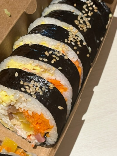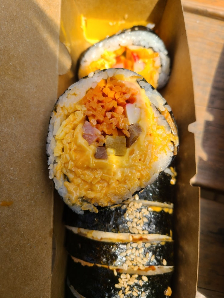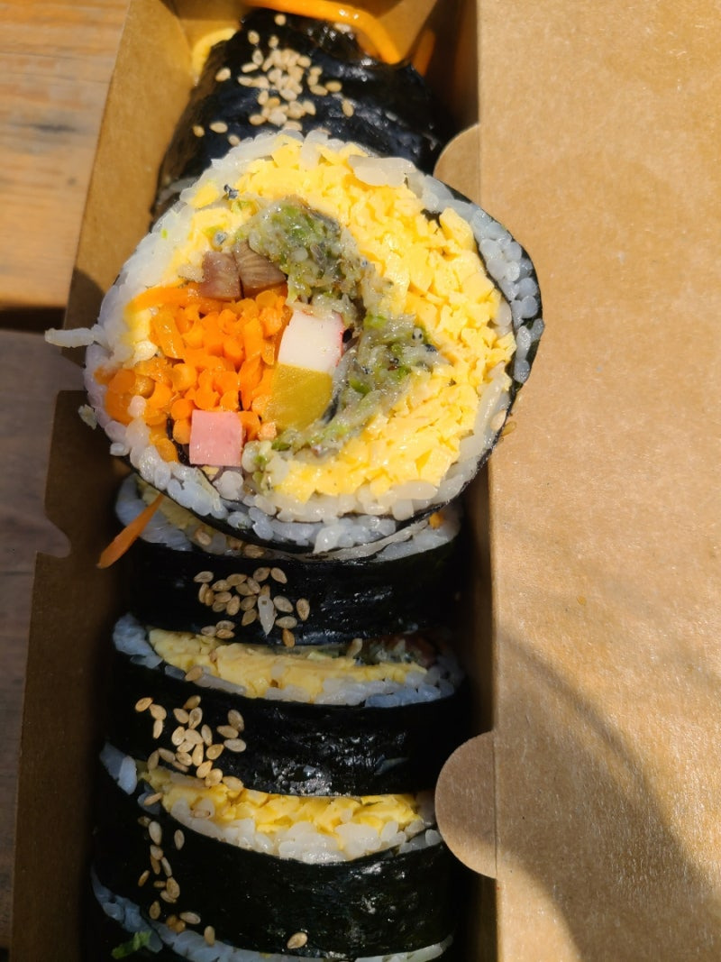 또한, 김밥 위에 뿌려진 깨가 고소함을 더해주고, 각 재료의 신선함이 느껴져서 정말 맛있어요.
