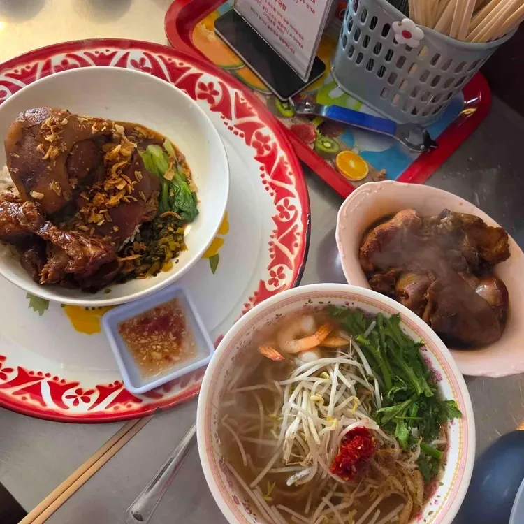 서보의 메뉴는 태국식 족발덮밥과 새우국밥 두 가지로 간단해요. 족발덮밥은 13,000원, 새우국밥은 12,000원으로 가격대도 합리적이에요. 족발덮밥은 부드러운 족발과 함께 다양한 채소가 곁들여져 나와요.