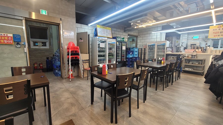 식당 내부는 아늑하고 깔끔해요. 나무 테이블과 의자가 잘 배치되어 있어, 친구나 가족과 함께 오기 좋은 분위기랍니다. 조명이 밝고, 깨끗한 환경에서 식사를 즐길 수 있어요.