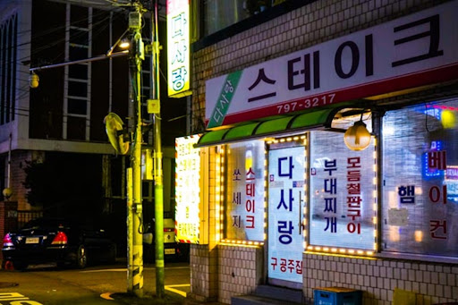서울의 중심부, 남영역과 숙대입구역 사이에 자리한 작은 골목길을 걷다 보면 시간이 멈춘 듯한 공간과 마주하게 됩니다. 화려한 간판도, 현대적인 인테리어도 없지만 40년이 넘는 세월 동안 한자리를 지켜온 '다사랑 스테이크'는 그 존재만으로도 깊은 이야기를 품고 있습니다. 흰색 타일로 장식된 소박한 외관과 붉은색 간판이 만들어내는 아날로그적 감성은 빠르게 변화하는 서울의 식당가에서 찾아보기 힘든 진정성을 담고 있습니다.