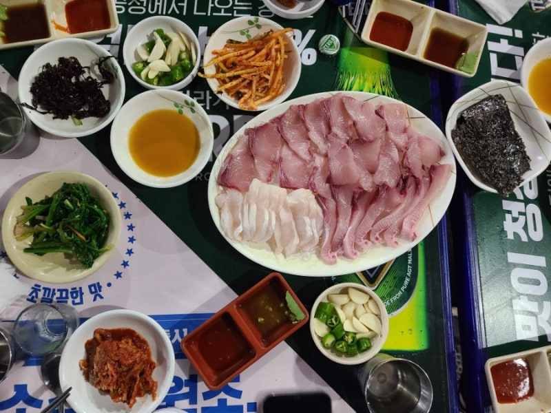 에서 보실 수 있는 것처럼, 회와 함께 나오는 밑반찬도 푸짐하게 제공되니 기대하셔도 좋아요.