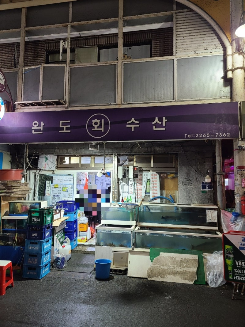 완도회수산은 종로5가 신진시장 안에 위치해 있어요. 시장의 활기찬 분위기 속에서 신선한 해산물을 직접 구매하고, 바로 요리해 먹을 수 있는 곳이죠. 외관은 전통적인 시장의 느낌을 잘 살리고 있으며,