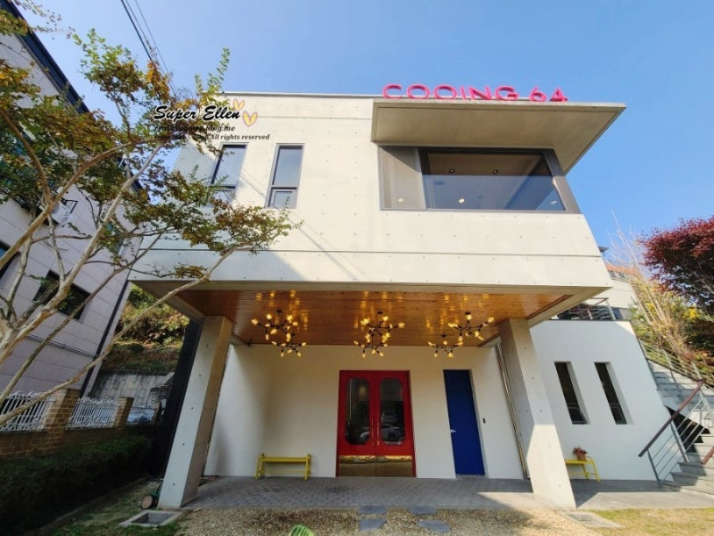 쿠잉64는 안양 삼막사 근처에 위치해 있어요. 이곳은 현대적인 건축 디자인이 돋보이는 카페로, 외관부터 눈길을 사로잡아요.