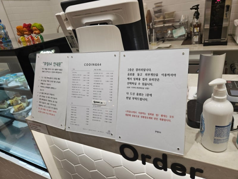 쿠잉64의 메뉴는 정말 다양해요. 디저트부터 음료까지 여러 가지가 준비되어 있는데, 특히 케이크와 커피가 인기랍니다.