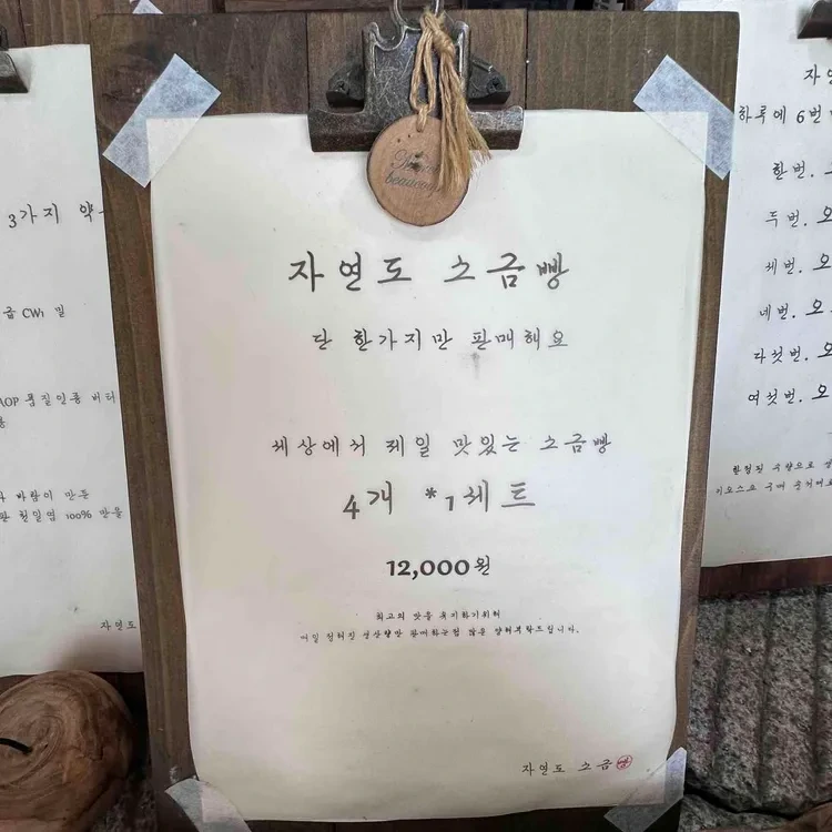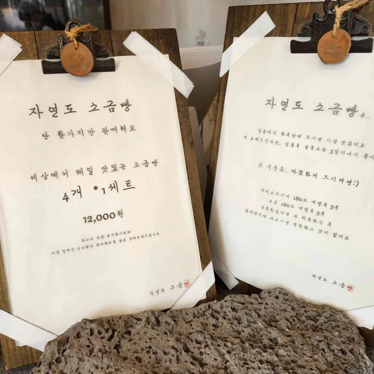 이곳의 대표 메뉴는 바로 자연도 소금빵이에요. 4개 세트가 12,000원으로, 가격도 합리적이에요. 빵의 크기도 적당해서 간식으로 먹기 좋고, 여러 개를 사서 나눠 먹기에도 좋아요.