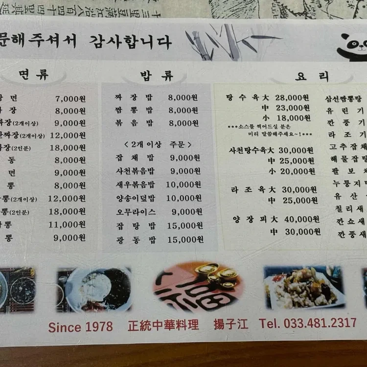 양자강의 메뉴는 다양하고 가격도 합리적이에요.