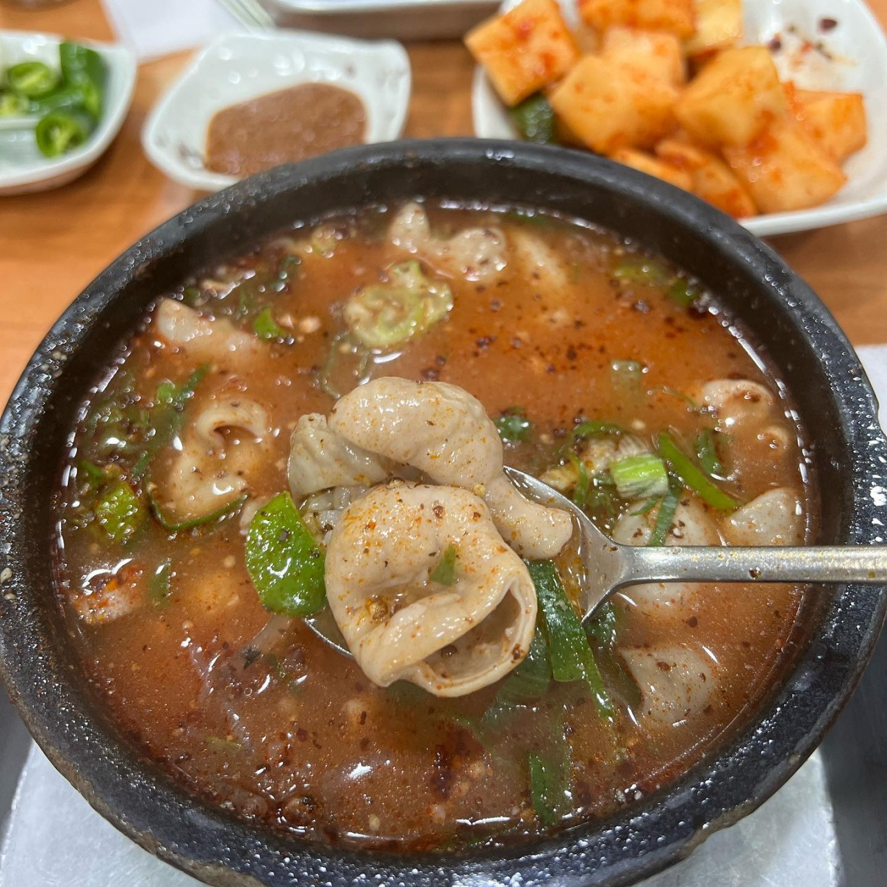 신선한 내장으로 만든 내장탕은 시원하고 칼칼한 맛이 매력적이에요. 함께 제공되는 밑반찬도 다양해서, 여러 가지 맛을 즐길 수 있답니다.