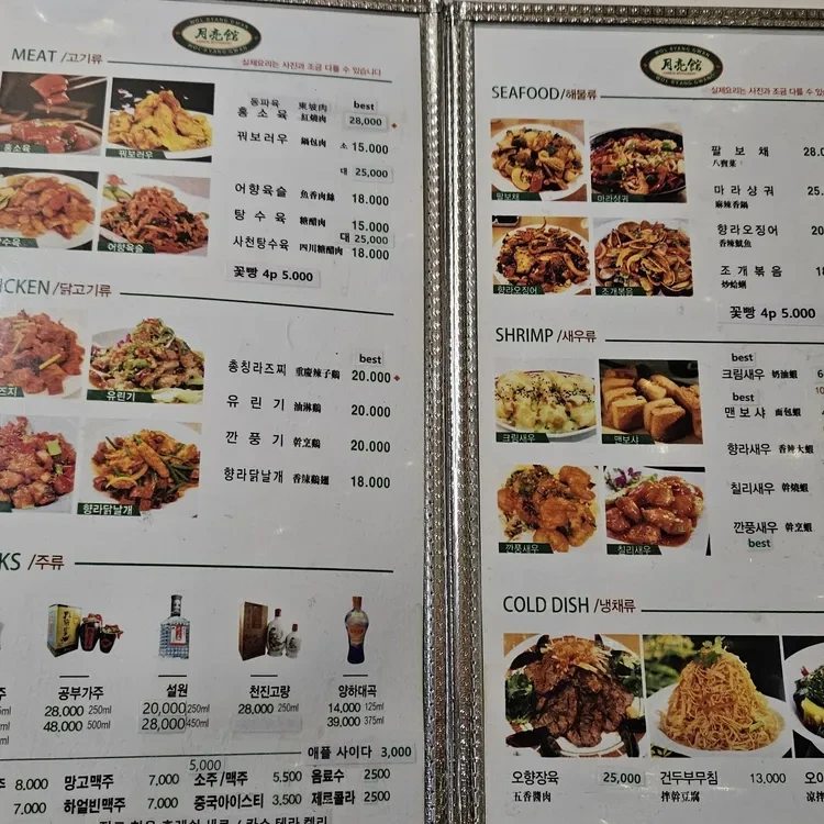 월량관의 메뉴는 정말 다양해요. 특히 추천하고 싶은 메뉴는 월량면과 꿔티에, 그리고 쇼마이에요. 월량면은 국물이 진하고 면발이 쫄깃해서 정말 맛있어요. 꿔티에는 매콤한 소스와 함께 나와서 입맛을 돋우고, 쇼마이는 바삭한 식감이 일품이에요. 가격대는 월량면이 약 12,000원, 꿔티에는 15,000원, 쇼마이는 8,000원 정도로, 가격도 매우 합리적이에요.