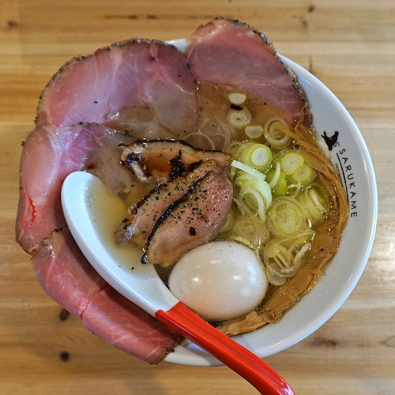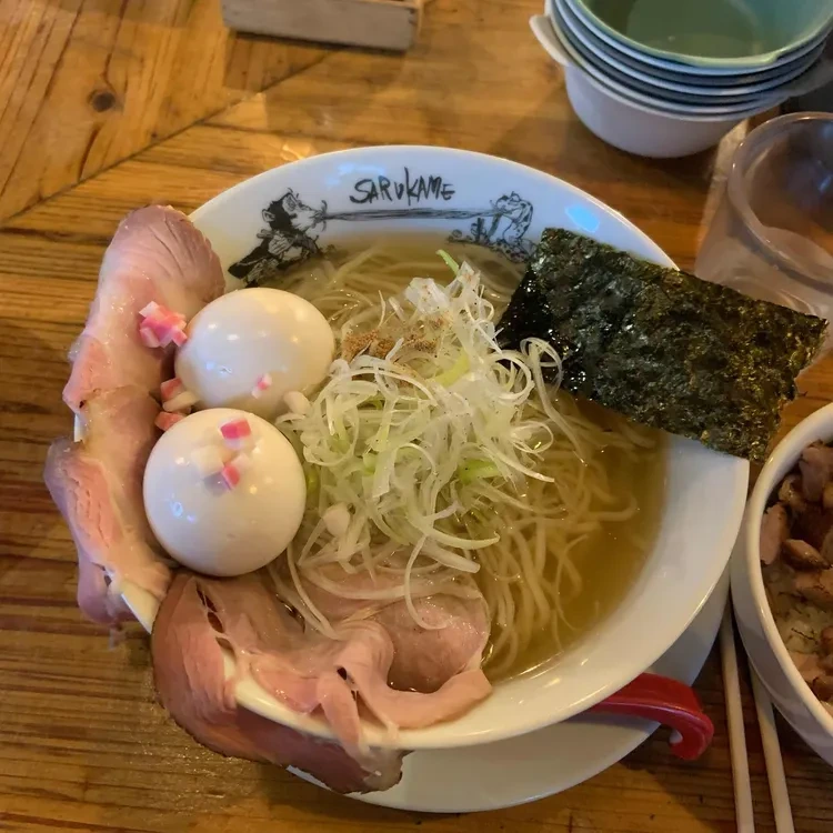 사루카메의 대표 메뉴는 돈코츠 라멘과 시오 라멘이에요. 돈코츠 라멘은 진한 돼지 뼈 육수로 만들어져 깊고 풍부한 맛을 자랑합니다.