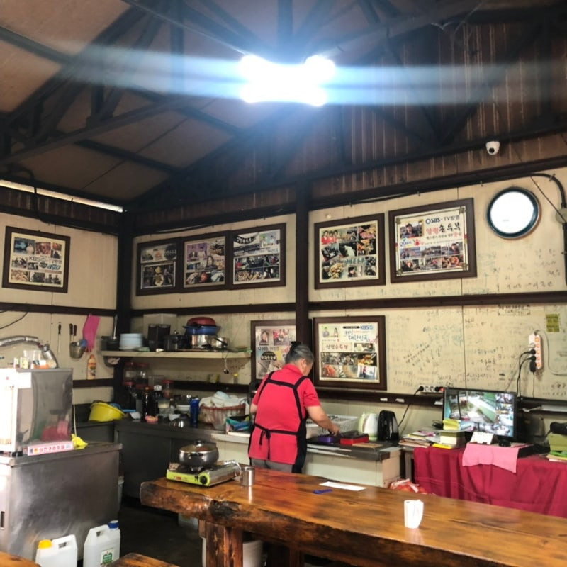 식당 내부는 아늑하고 따뜻한 느낌이 들어요. 나무로 된 테이블과 의자, 그리고 벽에 걸린 사진들이 정겨운 분위기를 만들어 주죠. 손님들이 자연스럽게 둥글게 모여 앉을 수 있는 구조여서, 처음에는 조금 어색했지만 금방 친해질 수 있었어요.