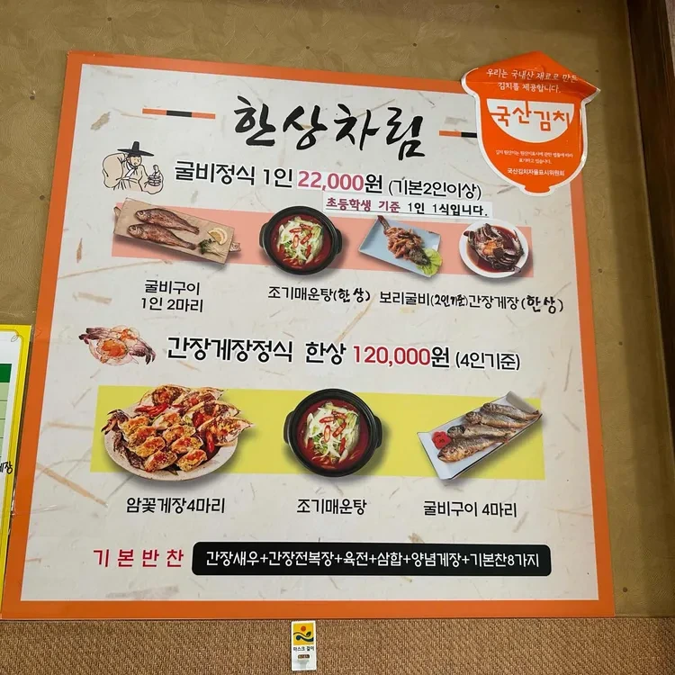이곳의 추천 메뉴는 단연 굴비정식이에요. 굴비정식은 22,000원에 제공되며, 신선한 굴비와 함께 다양한 반찬이 나와요. 특히, 이곳의 굴비는 해풍에 말려 쫄깃하면서도 부드러운 식감이 일품이에요.