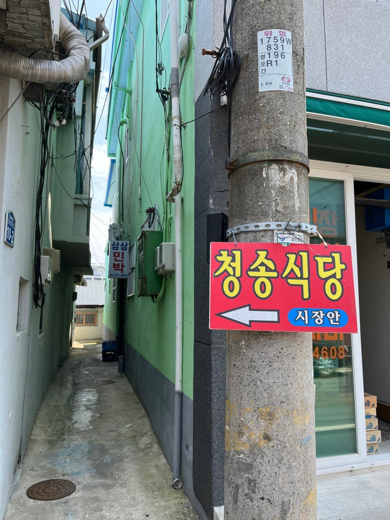 청송식당은 영덕 강구항 내에 위치해 있어요. 주변에는 다양한 상점과 시장이 있어 식사 후에 구경하기에도 좋은 장소랍니다. 식당으로 가는 길은 좁은 골목길을 지나야 하는데, 이곳은 조용하고 아늑한 분위기를 자아내요.