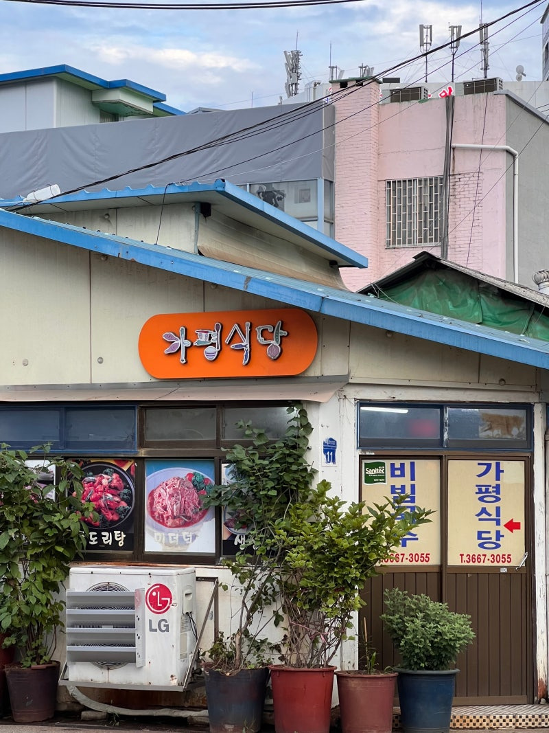 가평식당은 서울 영등포구 문래동에 위치해 있어요. 이곳은 백반 전문 식당으로, 간단한 메뉴와 정갈한 음식으로 유명해요. 식당 외관은 깔끔하고 소박한 느낌을 주며, 입구에는 '가평식당'이라는 간판이 눈에 띄어요.