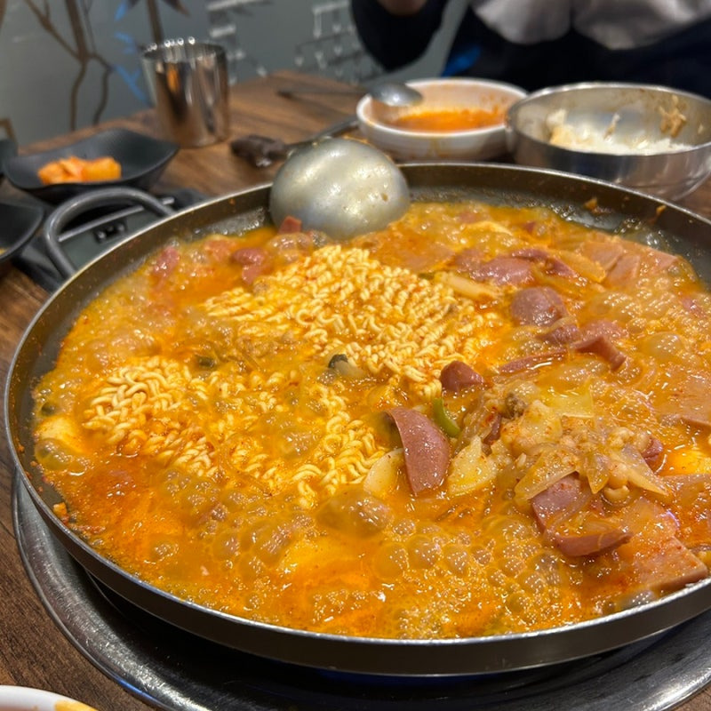 식당 내부는 항상 활기차고, 많은 사람들이 즐겁게 식사하는 모습이 인상적이에요. 특히, 부대찌개가 끓는 소리와 함께 나오는 향긋한 냄새는 정말 매력적이에요.