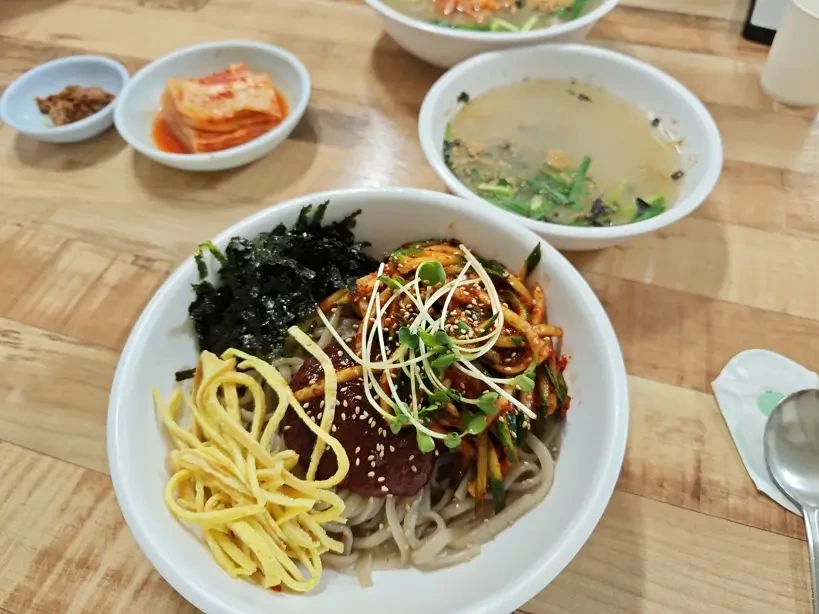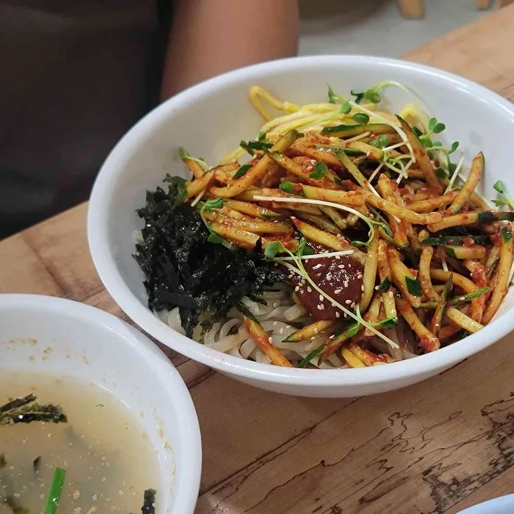 이곳의 대표 메뉴는 바로 칡국수에요. 칡국수는 부드럽고 쫄깃한 면발이 특징으로, 깊고 진한 육수와 함께 제공돼요. 면 위에는 신선한 채소와 고명이 가득 올라가 있어 비주얼도 훌륭해요.