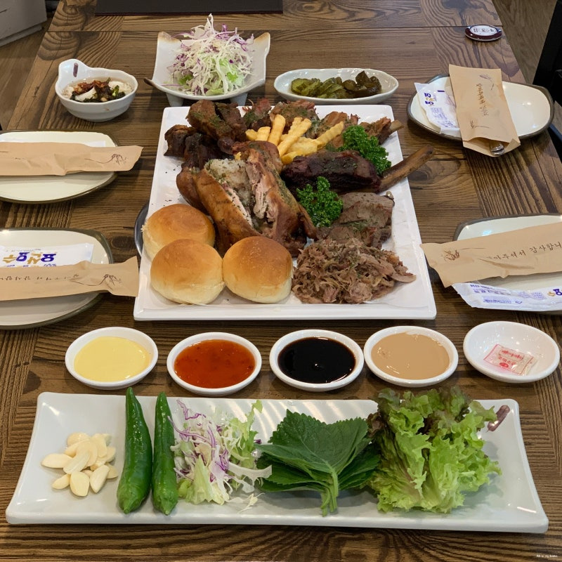 이곳의 대표 메뉴는 바로 삼겹살 바비큐와 폭립이에요. 삼겹살은 부드럽고 육즙이 가득해 한 입 베어 물면 고기의 풍미가 입안 가득 퍼져요. 폭립은 달콤한 소스와 함께 구워져 바삭한 식감이 일품이에요. 가격은 삼겹살이 1인분에 약 15,000원, 폭립은 20,000원 정도로 합리적인 편이에요.