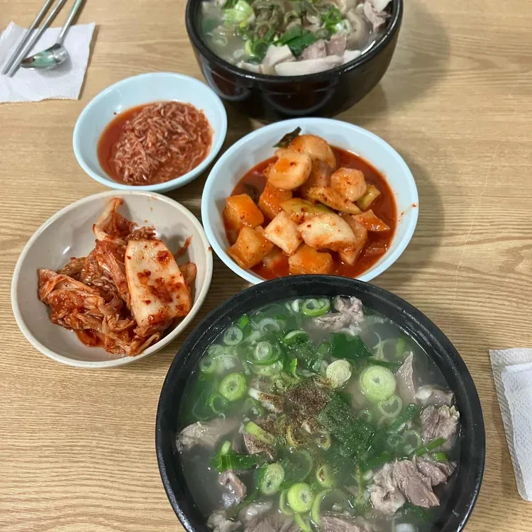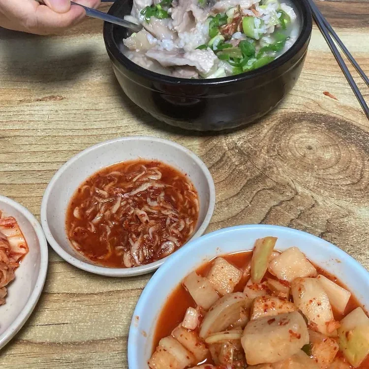 이 외에도 다양한 반찬들이 함께 제공되는데, 특히 김치와 깍두기가 맛있어요. 깍두기는 아삭한 식감이 살아있고, 매콤한 맛이 국밥과 잘 어울려요.