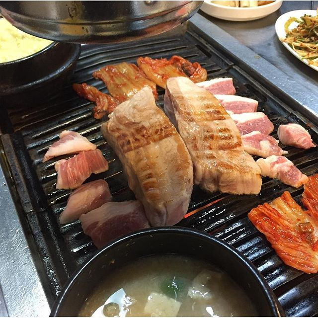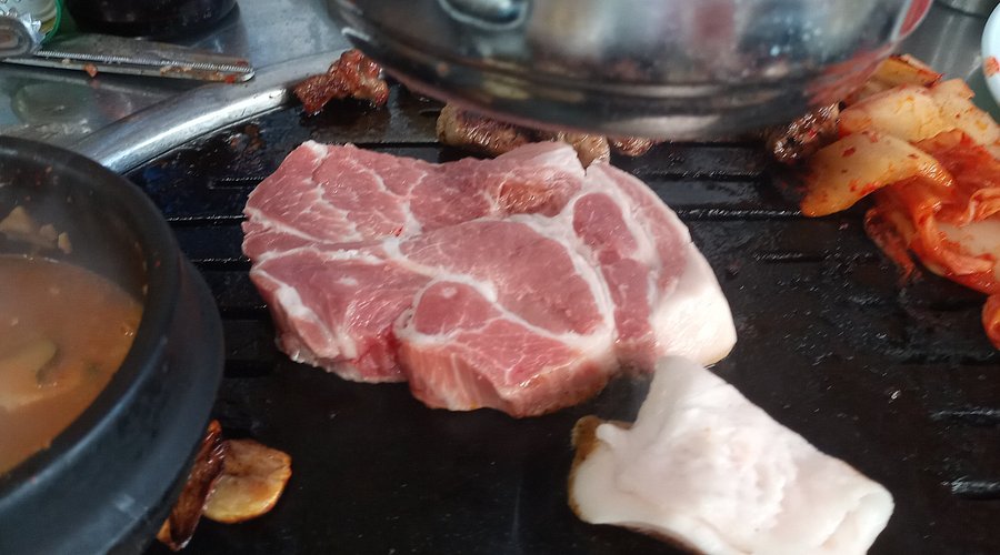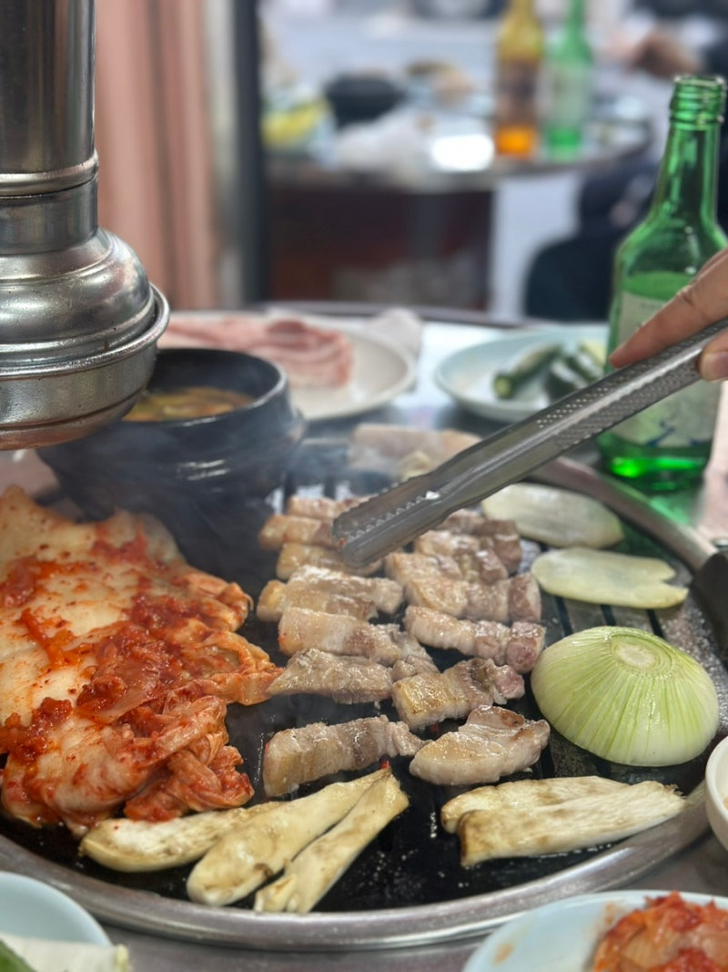 고기를 굽는 동안 김치와 다양한 채소도 함께 구워지는데, 이 조합이 정말 맛있답니다. 고기를 한 입 베어 물면, 고소한 맛과 함께 입안 가득 퍼지는 육즙이 정말 일품이에요.