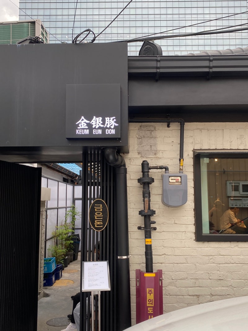 금은돈은 용리단길에 위치한 고기 전문점으로, 현대적인 디자인의 외관이 인상적이에요.