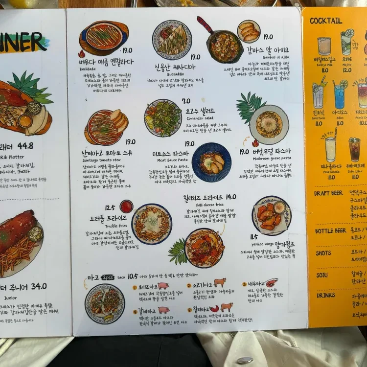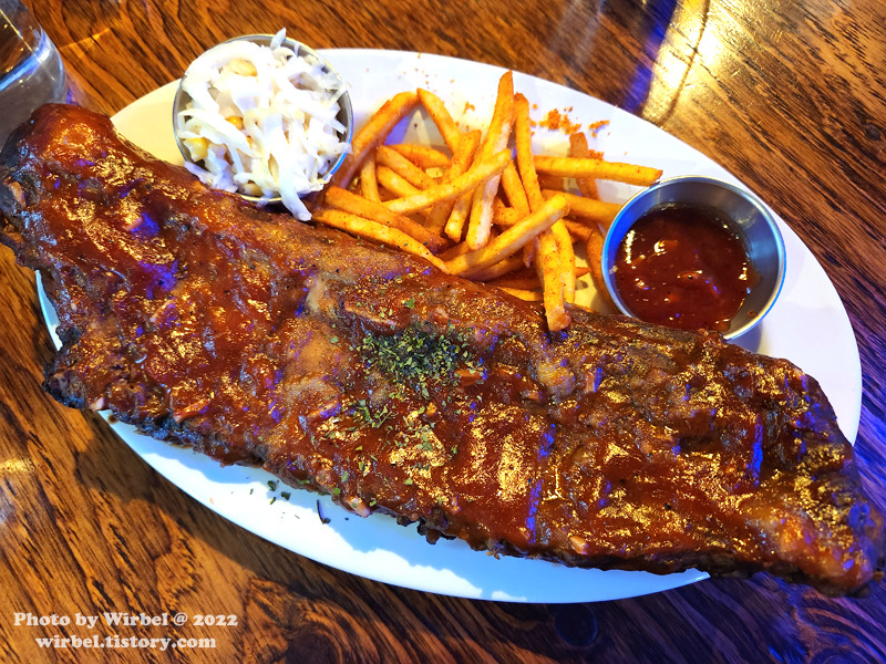에서 보이는 바비큐 립은 정말 맛있었어요. 소스가 잘 배어 있어 육즙이 풍부하고, 사이드로 나오는 감자튀김과 코울슬로도 훌륭했답니다. 용리단길 버뮤다 삼각지에서 멕시칸 음식의 진수를 경험해 보세요!