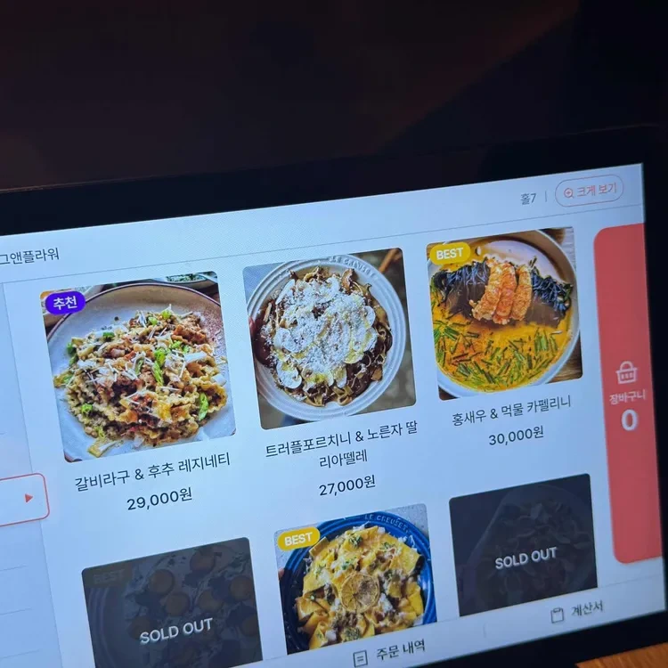 - 해산물 파스타 : 가격은 30,000원으로, 신선한 조개와 새우가 듬뿍 들어가 있어요.