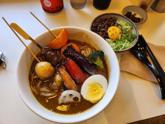 히비의 주 메뉴는 스프카레인데요, 이곳의 스프카레는 진한 국물과 다양한 재료가 어우러져 정말 맛있어요. 특히, 스프카레와 함께 나오는 다양한 토핑이 매력적이에요.