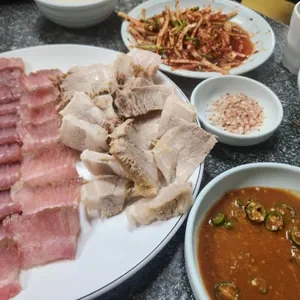 홍어 외에도 돼지고기, 해산물과 함께 제공되는 다양한 밑반찬이 준비되어 있습니다. 특히, 신선한 채소와 함께 나오는 반찬들은 홍어와 환상적인 조화를 이루어요. 매운 소스와 함께 먹으면 그 맛이 배가 되죠.